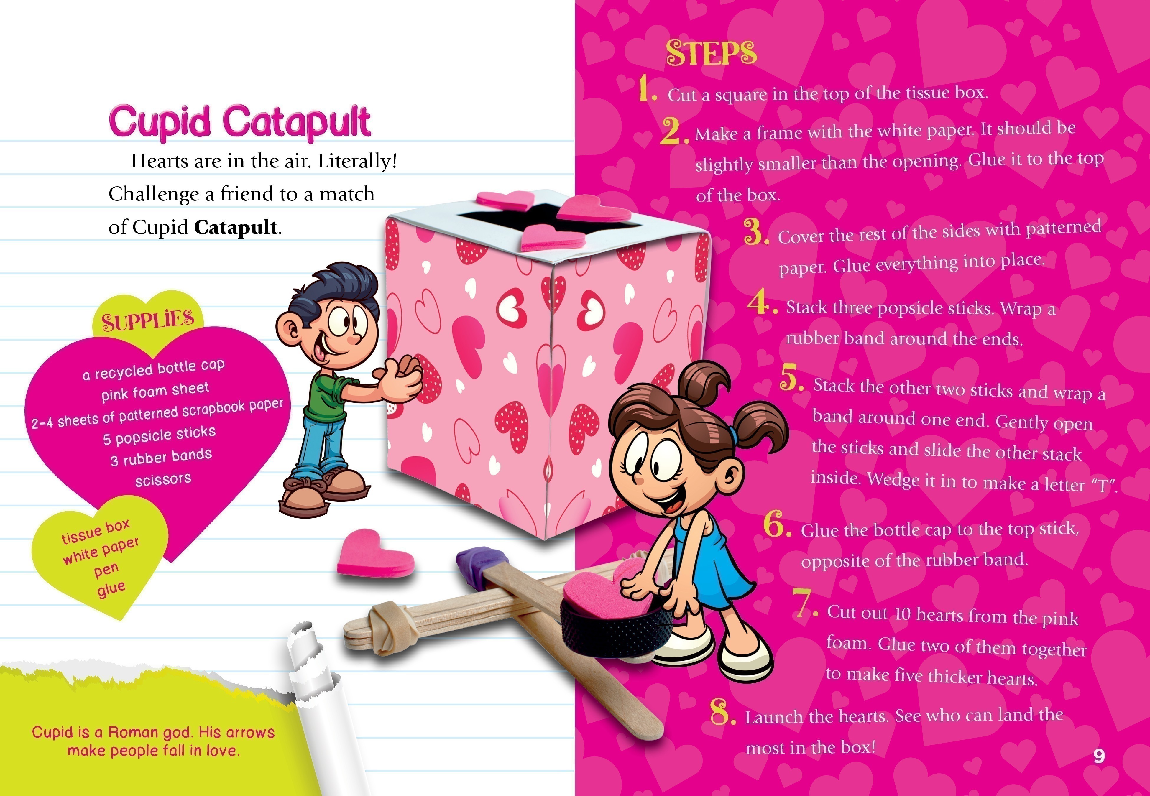 It's Valentine's Day! Spread love with a cute love bug, funny card, and super bestie bot. These DIY crafts and other activities will make the perfect Valentine's Day celebration for friends and family. Kids learn how easy and fun making crafts can be through simple instructions delivered with a colorful design. Detailed lists of supplies keep readers prepared and step-by-step directions make sure they succeed.